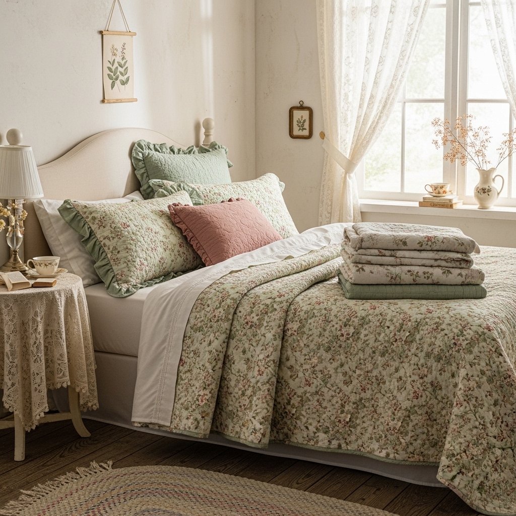 Bedding is the centerpiece of most vintage aesthetic bedrooms. Floral quilts, crochet blankets, and ruffled pillowcases create softness and comfort. Pastel shades like sage green, dusty rose, and cream enhance the overall theme. Layering textures gives the bed a cozy cottage-style appearance. This idea alone can transform a plain bedroom into a vintage haven.