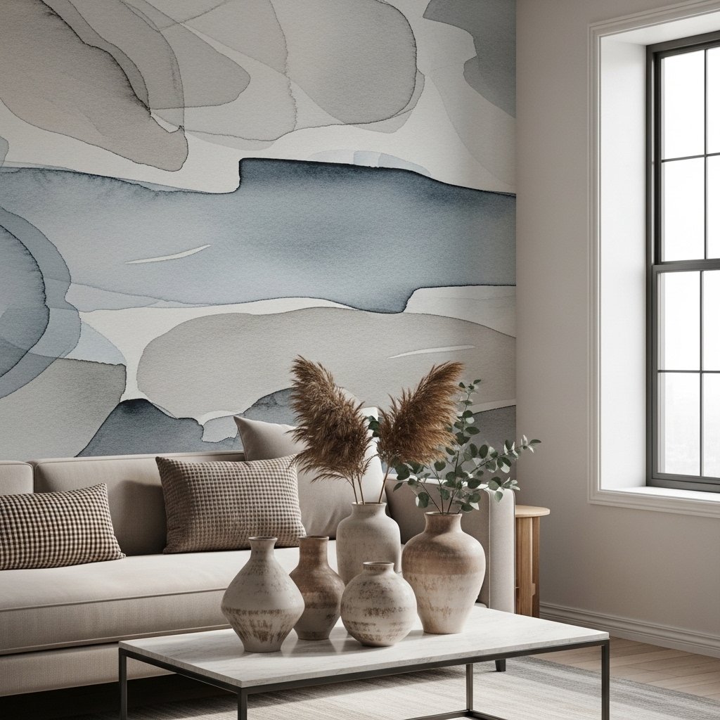 Abstract wallpaper offers a creative and artistic personality to the room. Soft brush strokes, geometric shapes, and watercolor blends create visual interest. This style suits modern and contemporary interiors very well. Pairing it with neutral furniture keeps the space balanced. Abstract wallpaper acts like a wall painting without needing extra decor.