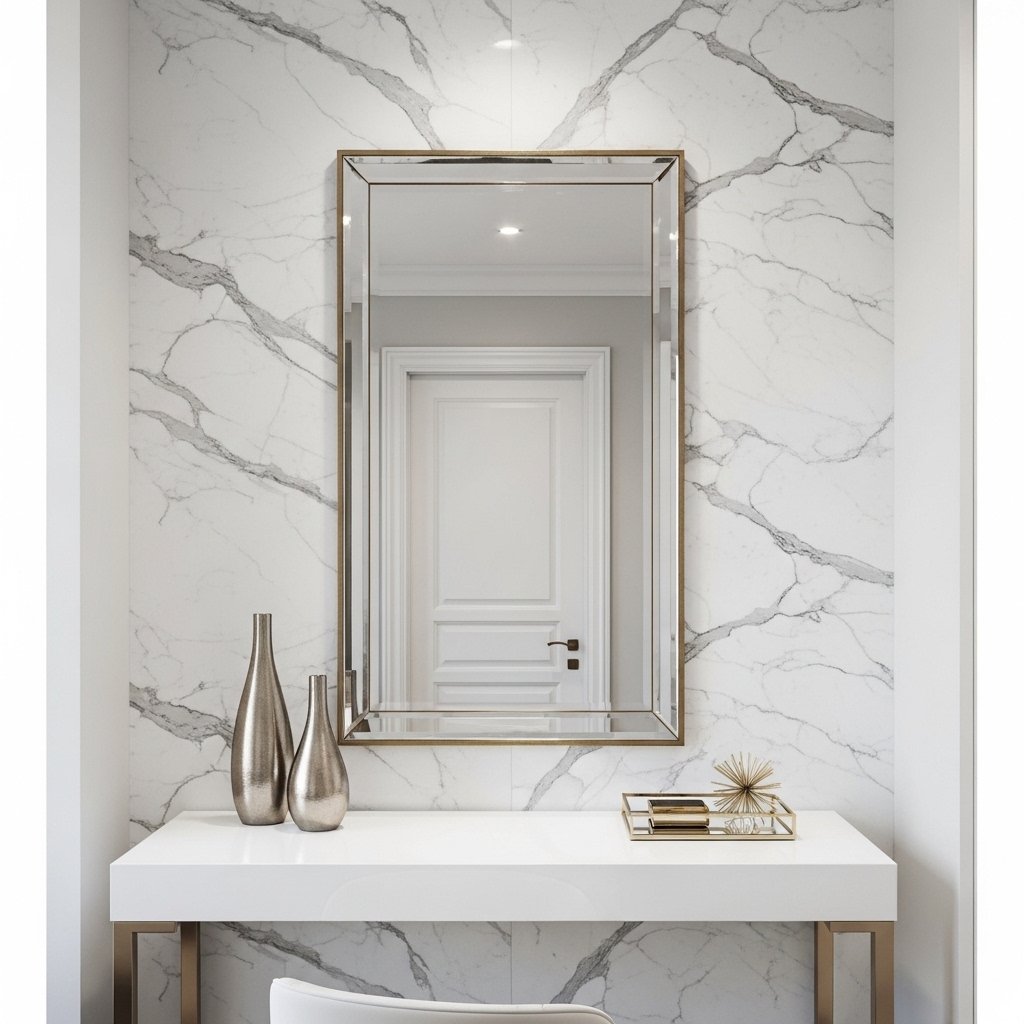 Marble wallpaper gives a luxurious and elegant appearance without expensive renovation. White marble with grey veins creates a modern and clean environment. It looks stunning behind desks, beds, or vanity areas. This wallpaper pairs well with metallic decor and mirrors. The result feels premium while staying affordable.