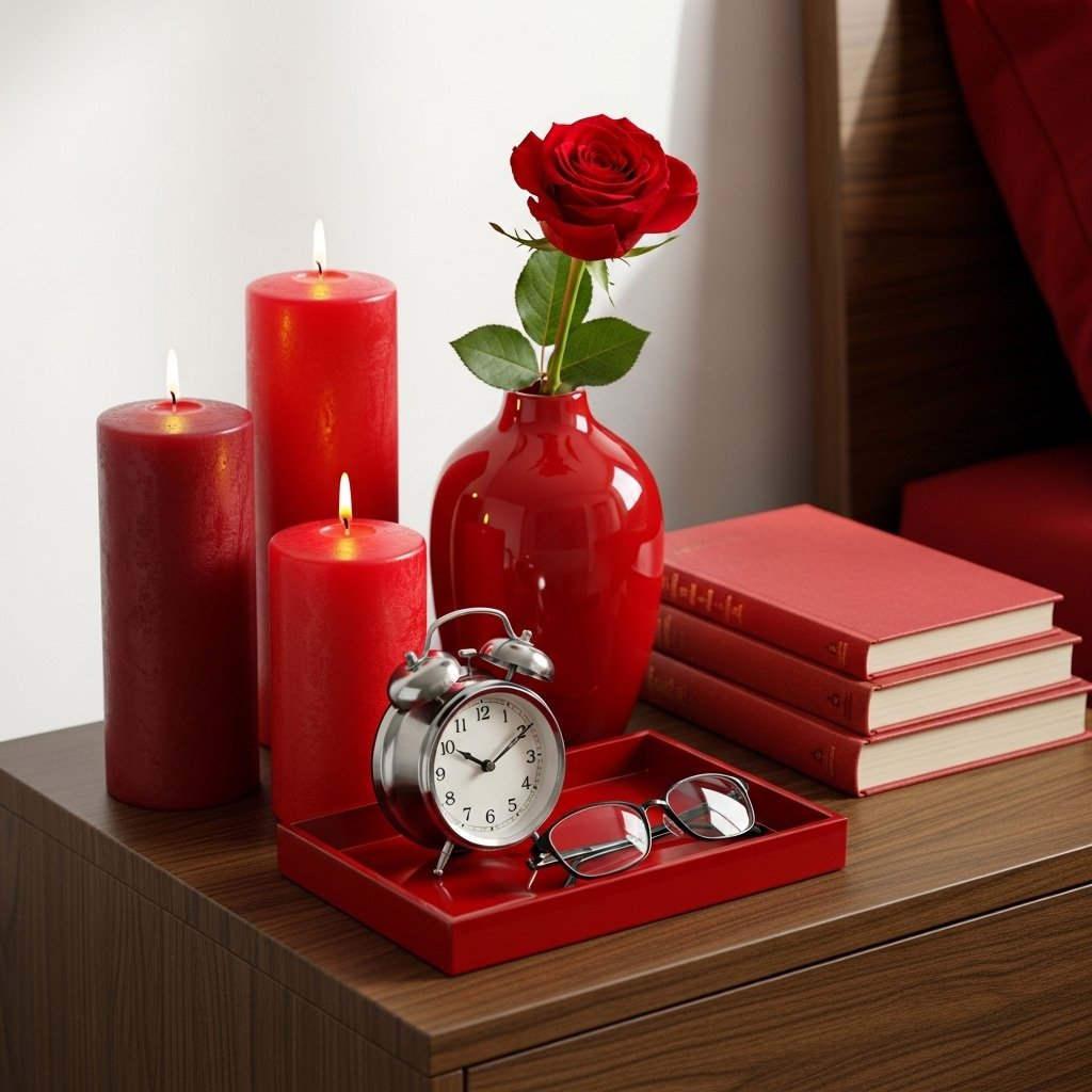 Decorative accessories allow you to personalize the red aesthetic effortlessly. Items like candles, vases, trays, or books with red accents add charm. Keep accessories minimal to avoid cluttering the space. Grouping décor in odd numbers creates a balanced visual arrangement. These small details add personality while maintaining elegance.