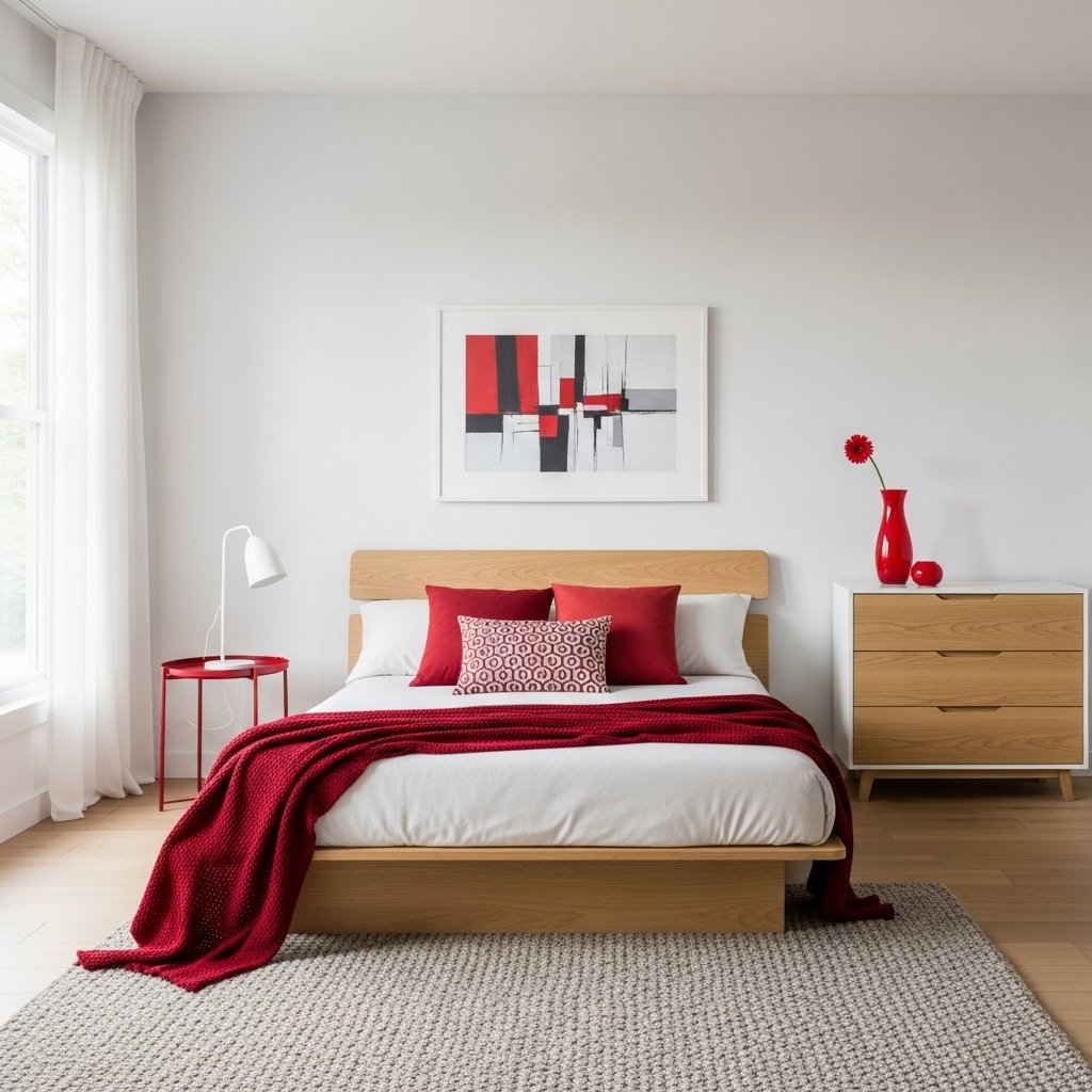 Red brings warmth, confidence, and elegance to a bedroom. It is perfect for creating a romantic or luxurious vibe. When used in the right amount, red can make the room feel inviting without being overwhelming.