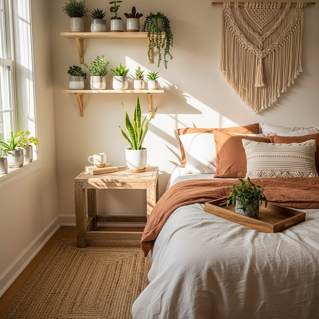 Incorporating natural elements like plants, wooden accents, or stone décor enhances the bedroom’s calm and aesthetic feel. Small indoor plants like succulents or snake plants add life and freshness without crowding the space. Wooden furniture or accessories introduce warmth and texture. Natural elements complement the neutral color palette and make the room feel cozy and grounded.