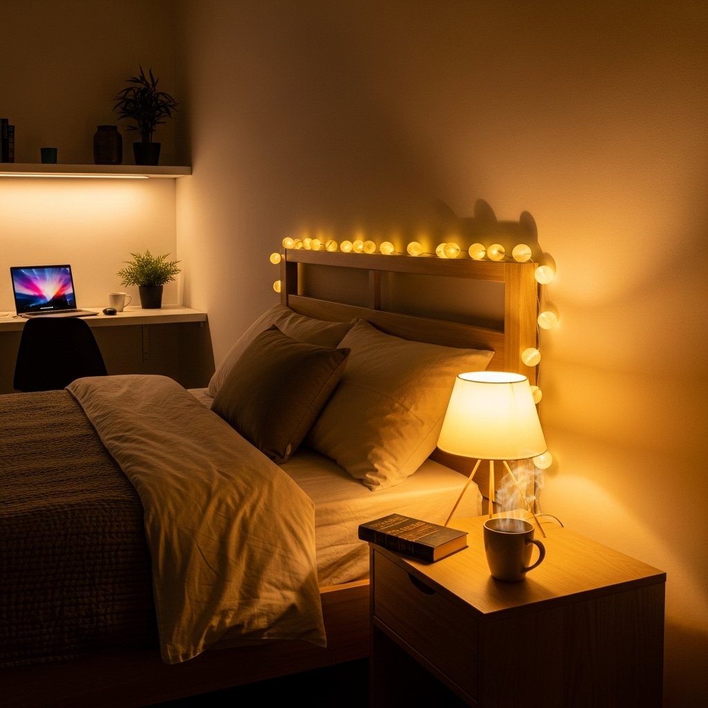 Lighting is essential in creating a soft and inviting atmosphere in a simple bedroom. Use warm LED lights, bedside lamps, or string lights to produce a gentle glow. Avoid harsh overhead lighting that can disrupt the relaxed ambiance. Layered lighting adds depth and highlights key areas like the bed or study desk. Proper lighting enhances the room’s aesthetic while promoting comfort and relaxation.