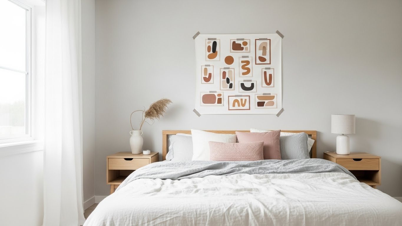 Wall art can be subtle yet impactful in a simple bedroom aesthetic. Opt for minimalist prints, black-and-white photography, or abstract designs. A single statement piece or a small gallery wall keeps the décor clean and organized. Avoid overly busy or colorful art that might overwhelm the serene atmosphere. Properly placed art adds personality while preserving minimalism.