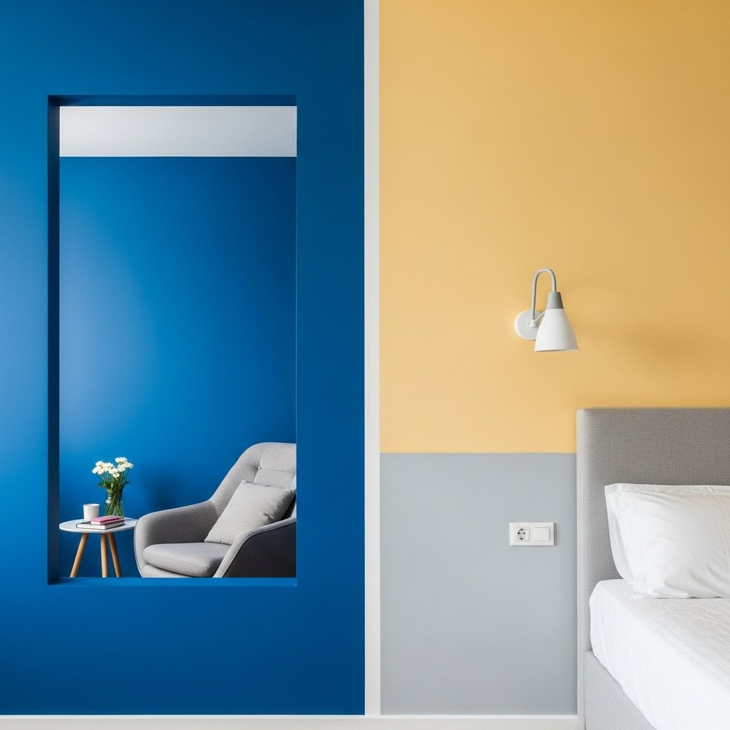 Color blocking is an artistic approach that combines two or more contrasting shades on the same wall. It creates visual interest and defines different areas in the bedroom, such as the sleeping zone and reading corner. You can experiment with shapes, angles, and proportions for a contemporary look. Neutral tones paired with bold colors work well for a modern aesthetic. Color blocking turns your walls into a creative, eye-catching feature.
