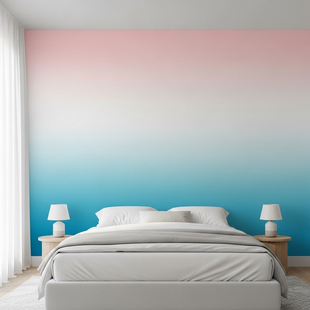 Ombre or gradient walls create a soft, dreamy effect that adds depth and dimension to the bedroom. By blending two or more shades of the same color, you can make the room feel modern and calming. Popular combinations include pastel pink fading into white or blue merging into teal. This technique works especially well behind the bed as a feature wall. Ombre walls provide a visually appealing backdrop without overwhelming the entire room.