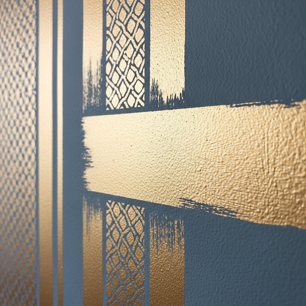 Metallic or gold accents on walls instantly make the bedroom look glamorous and sophisticated. You can add metallic stripes, brush strokes, or stenciled patterns to a painted wall. Gold, silver, or copper accents work best on neutral or deep-colored walls. This adds a luxurious feel without overwhelming the space. Metallic details create subtle shine and elegance, perfect for a chic, aesthetic bedroom.