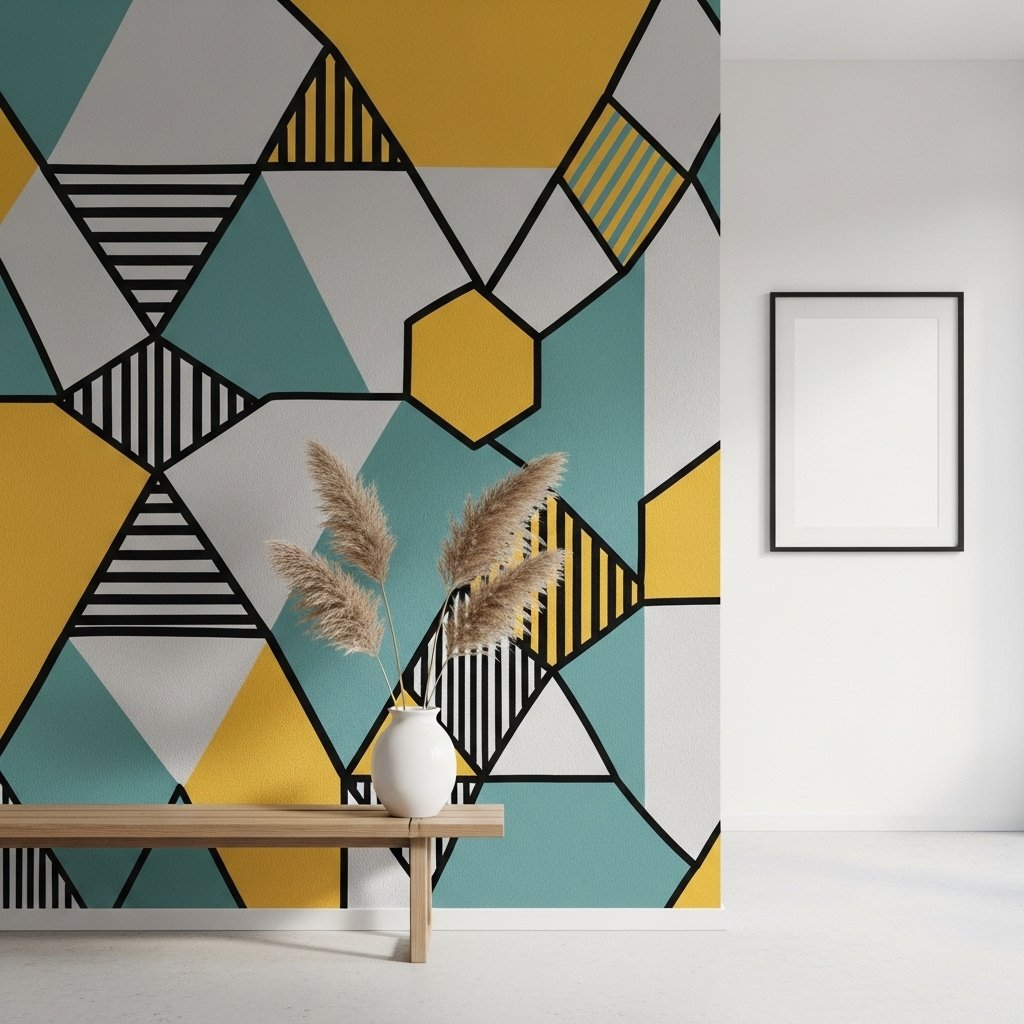 Geometric patterns are a trendy way to add structure and artistic flair to your bedroom. Triangles, diamonds, hexagons, or stripes can be painted in complementary colors to create a modern aesthetic. You can mix bold shades with neutrals to keep the room balanced and lively. This approach works perfectly for accent walls or smaller wall sections above the headboard. Geometric designs make the bedroom feel stylish, dynamic, and organized.