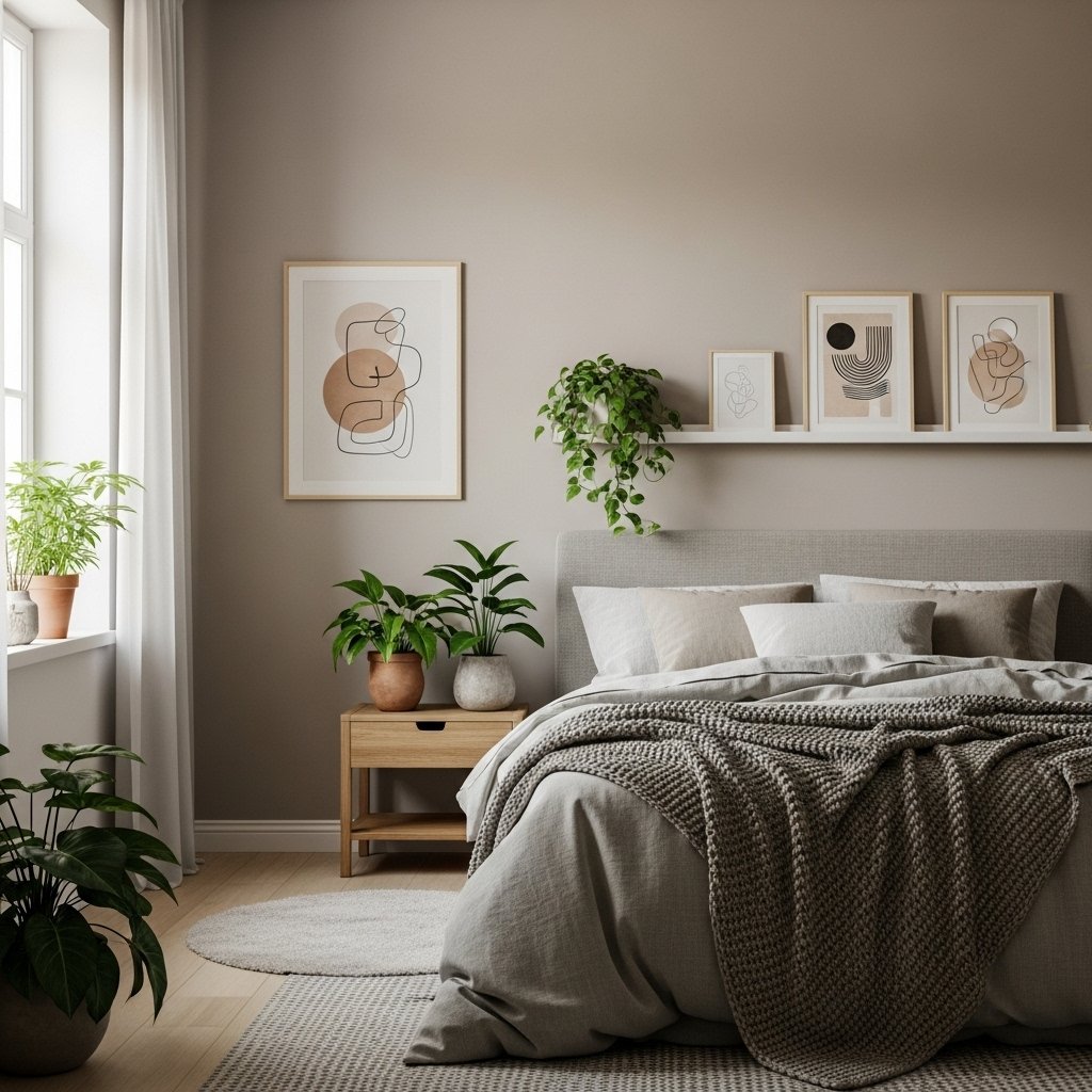 Neutral tones are timeless and perfect for creating a calm, cozy bedroom. Shades like beige, taupe, cream, or soft gray make the room feel more spacious and soothing. Minimalist walls are easy to pair with décor items such as framed artwork, plants, or patterned bedding. This style provides flexibility, allowing you to update your accessories without repainting. Neutral walls form the perfect canvas for a chic and relaxing bedroom.