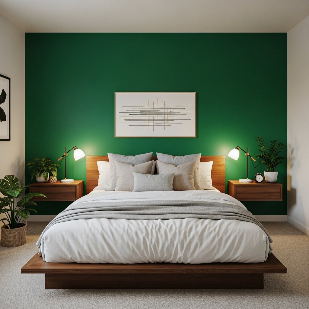 A bold accent wall adds a striking visual focus to your bedroom. Colors like navy, emerald green, deep pink, or burgundy create drama and elegance without overwhelming the entire space. The accent wall is usually painted behind the bed or behind a study corner for maximum impact. Complement the rest of the room with softer, neutral colors to maintain balance. This approach instantly transforms your bedroom into a statement space.
