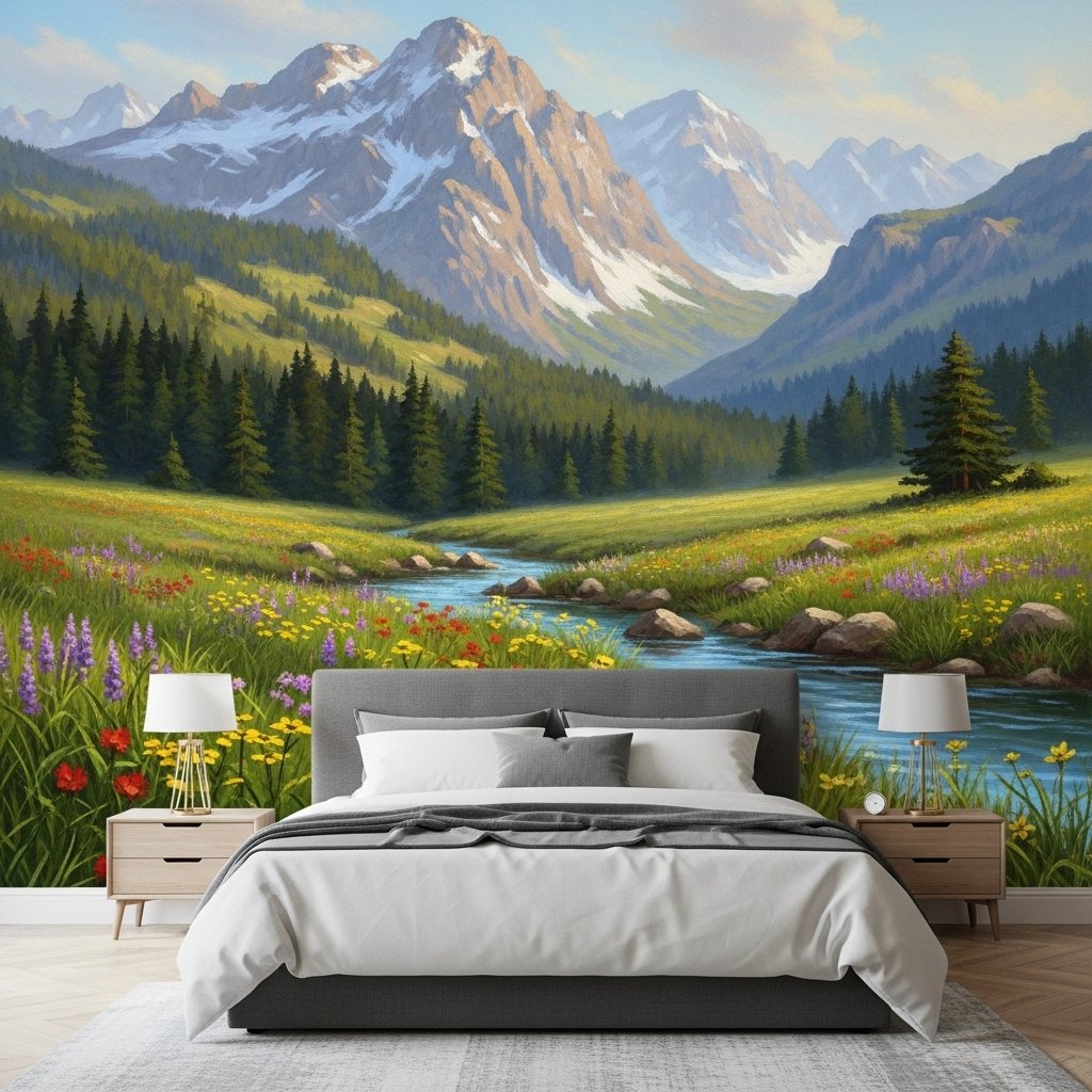 Nature-themed murals bring freshness, serenity, and creativity to bedroom walls. Mountains, forests, beaches, or floral patterns can be painted in soft or vibrant tones depending on your style. This type of wall painting creates an immersive, calming atmosphere that feels connected to nature. Murals can cover an entire wall or a smaller section as a focal point. It’s a perfect idea for a peaceful, aesthetic bedroom environment.