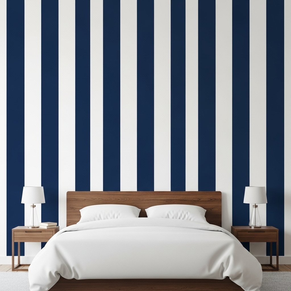Stripes or patterns give bedrooms a playful yet elegant vibe. Vertical stripes create the illusion of height, while horizontal stripes make the room feel wider. Patterns like polka dots, chevrons, or subtle brush effects can add visual interest without dominating the room. Striped walls pair well with simple bedding and furniture, maintaining a clean aesthetic. This idea adds character and dimension to a small or large bedroom alike.