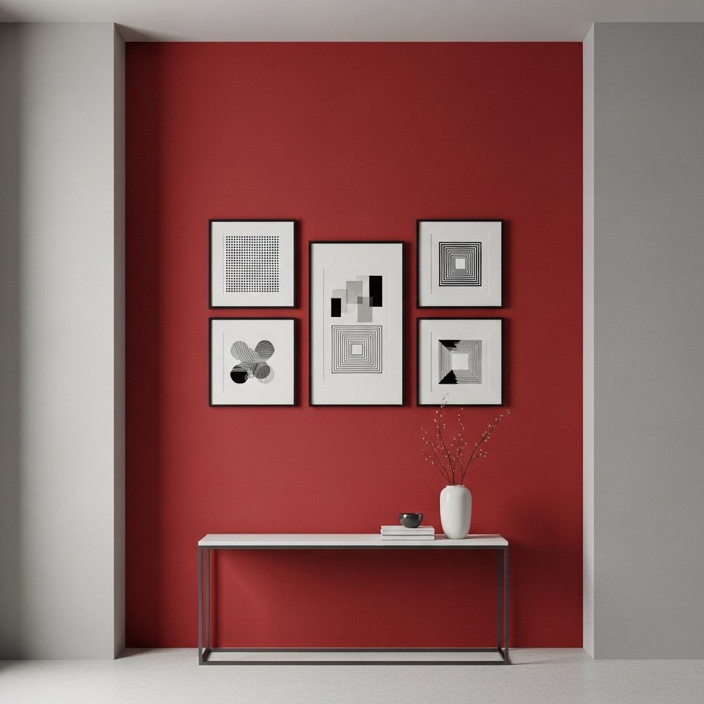 Paint one wall in a deep or muted red shade as the focal point. Keep other walls neutral with white, cream, or beige. Add minimal furniture and soft textures to balance the bold color.