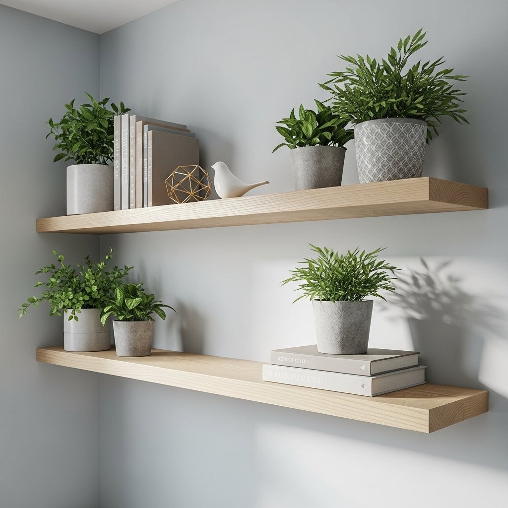 • Floating shelves with small decor