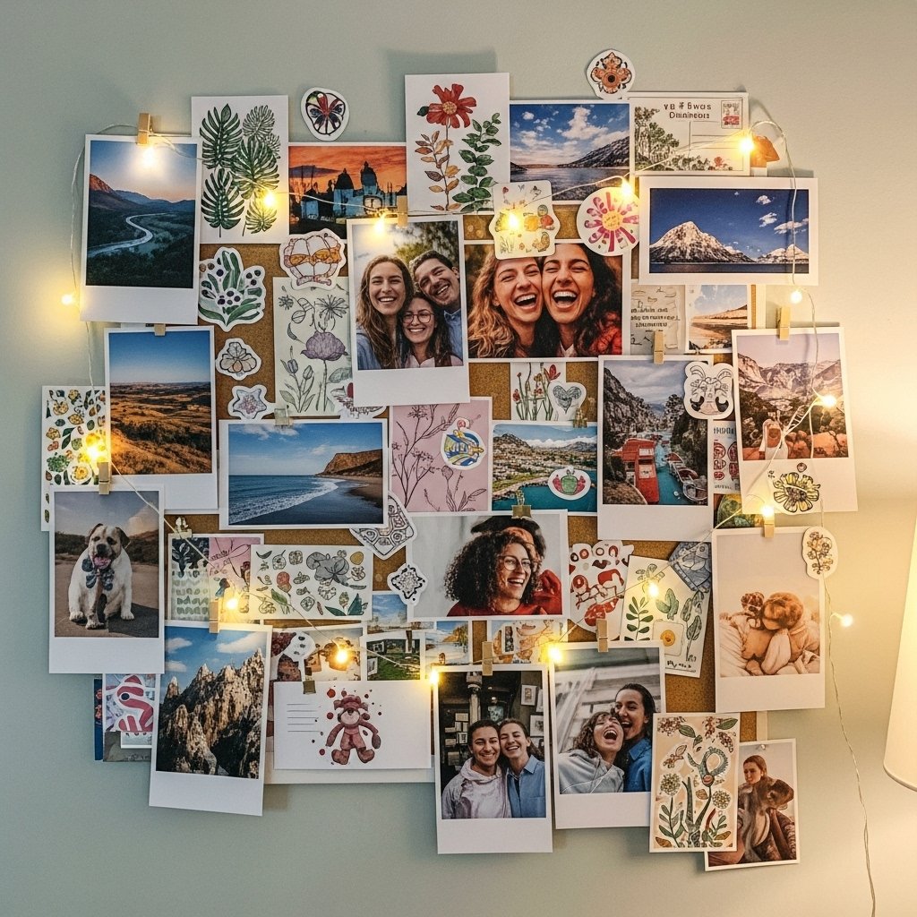 A DIY photo collage is a creative way to display memories while decorating your walls. Print your favorite photos and arrange them on a corkboard, string with clips, or directly on the wall using washi tape. You can mix in postcards, small prints, or decorative stickers to make it visually interesting. The collage can be updated easily whenever you want to add new memories. This project is quick, affordable, and perfect for personalizing your room.