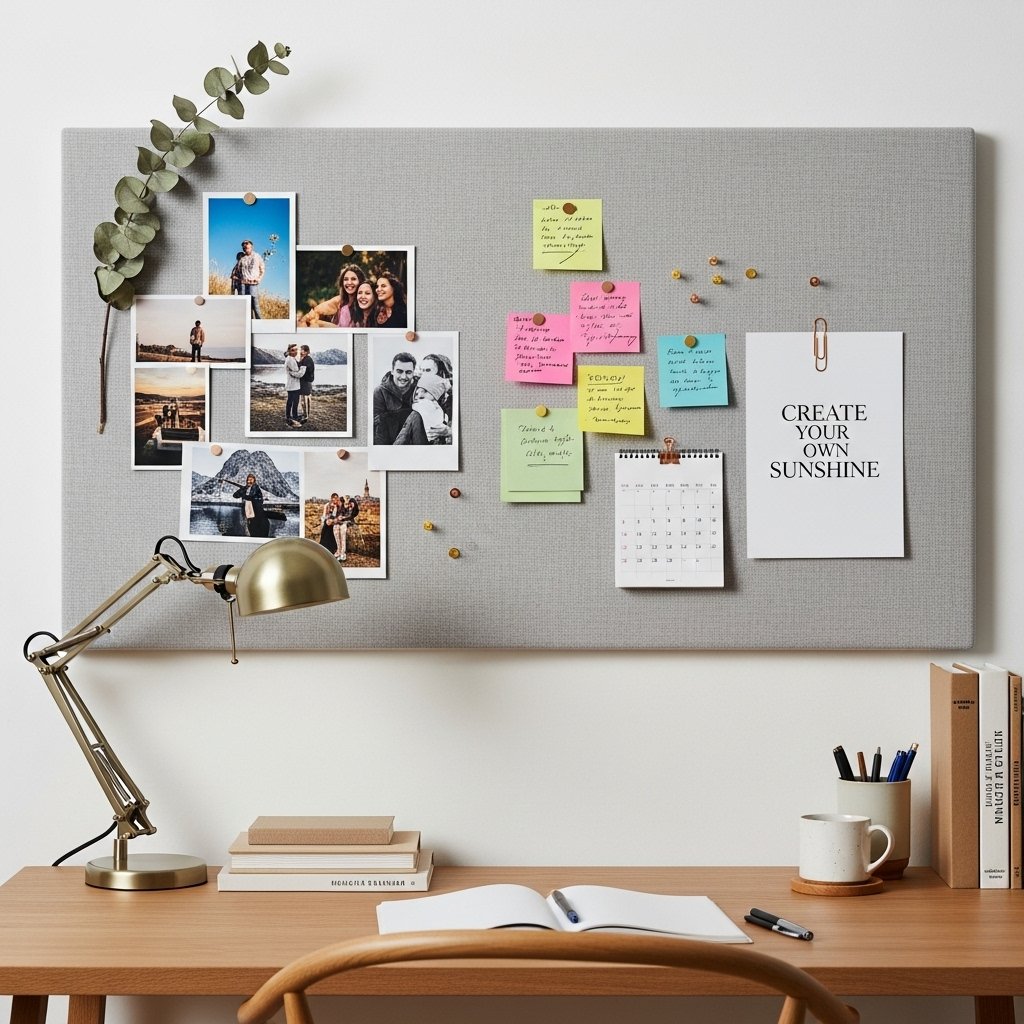 A bulletin board can be transformed into an aesthetic and functional DIY décor piece. Cover a corkboard with fabric, paper, or paint to match your room’s theme. Add pins, clips, or string to display photos, notes, and inspirational quotes. This DIY keeps your room organized while adding a personal touch. It’s perfect for students, crafters, or anyone who loves visual organization.