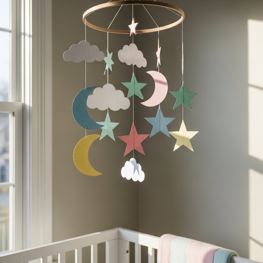 Paper hanging mobiles are perfect for creating a calm and dreamy room vibe. You can make shapes like moons, stars, hearts, or clouds and hang them with threads from a wooden hoop. This decor idea looks beautiful near the window or above the bed. It creates movement and adds a soft, whimsical feel to the room. Paper mobiles are lightweight and easy to change anytime.