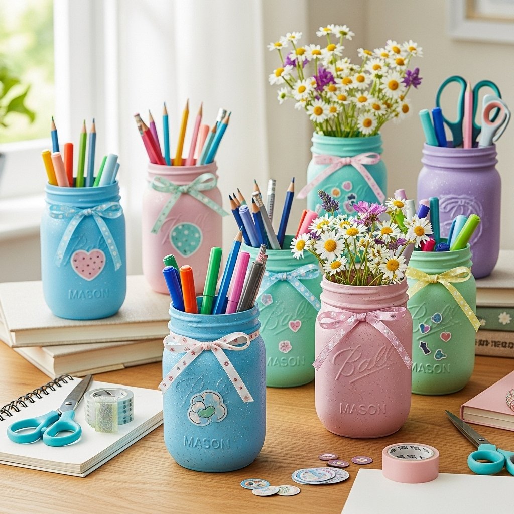 DIY painted mason jars are a fun and useful craft that can be used as pencil holders, makeup organizers, or flower vases. You can paint the jars in pastel colors, add glitter, or decorate them with ribbons and stickers. This craft is simple yet adds a stylish touch to the desk or shelf. Painted mason jars are also great for organizing small items and keeping the room clutter-free. They make a perfect decor item for teen girls who love cute and functional crafts.