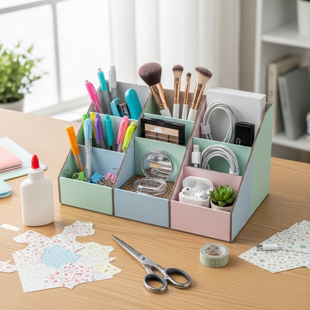 A DIY room organizer made from cardboard is a budget-friendly craft that helps keep the room neat and stylish. You can create small shelves, desk organizers, or storage boxes using cardboard, glue, and decorative paper. This project is perfect for storing makeup, stationery, or accessories while keeping the room clean. Painting the organizer in pastel colors or adding stickers can make it look trendy and cute. It’s an easy craft that also teaches teens how to reuse materials and stay organized.