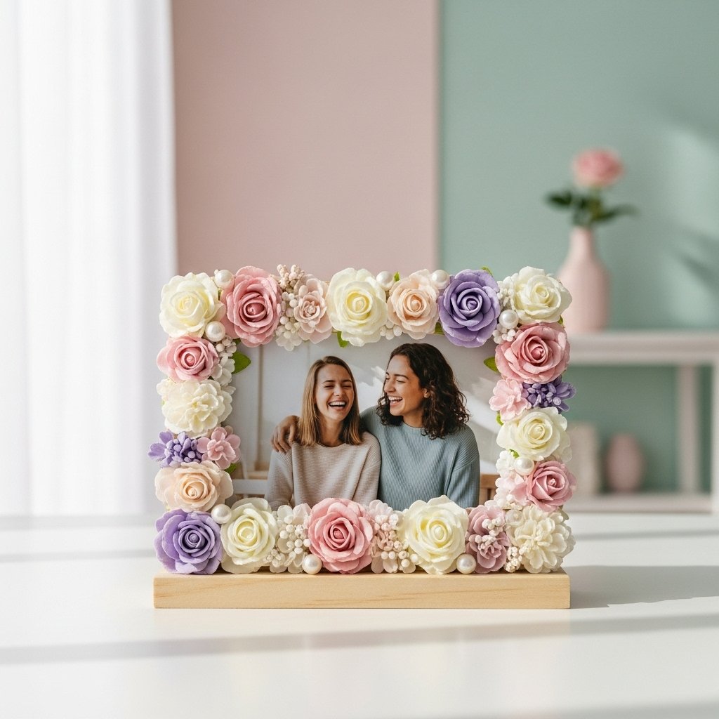 A DIY flower photo frame is a sweet and romantic decor idea for teen girls. You can decorate a plain photo frame using artificial flowers, pearls, and ribbons to make it look elegant. This craft is perfect for displaying favorite photos of friends, family, or pets. The floral design adds a fresh and feminine touch to the room. You can also match the flowers with your room color theme for a more coordinated look.