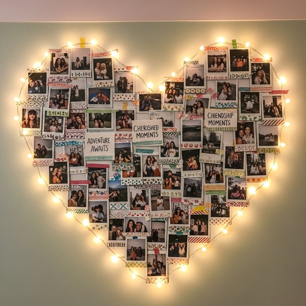 Creating an aesthetic wall collage is one of the easiest DIY room decor ideas for teen girls. You can use posters, magazine cutouts, and printed quotes to make a stylish collage that matches your room theme. To make it look more organized, arrange the items in a grid pattern or heart shape. Adding decorative tape or fairy lights around the collage makes it look even more attractive. This craft is perfect for teens who love fashion, K-pop, or minimalist room styles.