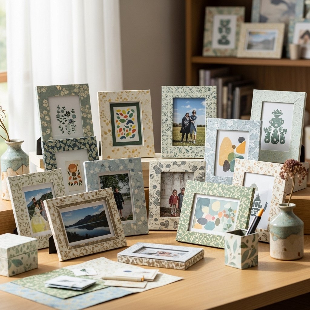 Handmade paper can be used to create decorative borders and picture frames. Glue textured or patterned paper around a frame’s edge, adding layers or cut-out designs for extra flair. These frames can enhance your favorite photos, prints, or artwork while coordinating with other handmade paper decor in the room. Paper frames are lightweight, budget-friendly, and easy to craft, allowing you to make multiple matching pieces. They bring a playful yet elegant touch to desks, shelves, or walls.
