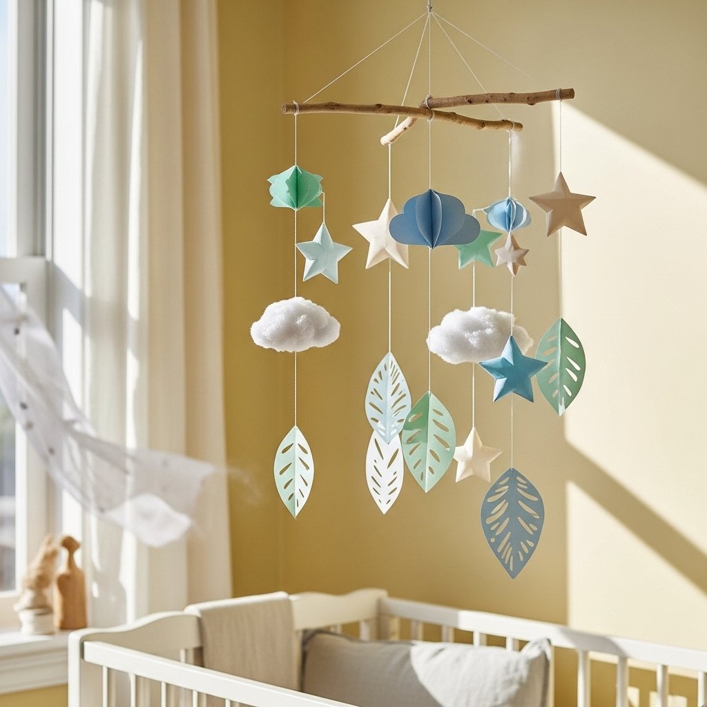 Paper mobiles are perfect for adding movement and visual interest to a space. Cut shapes like stars, clouds, or leaves from lightweight handmade paper and hang them using threads from a wooden hoop or branch. This decor idea works especially well in nurseries or bedrooms, creating a whimsical and calming effect. Colors can be customized to match the room’s theme or create a subtle, monochromatic look. Paper mobiles are easy to refresh with new designs whenever you want a change.