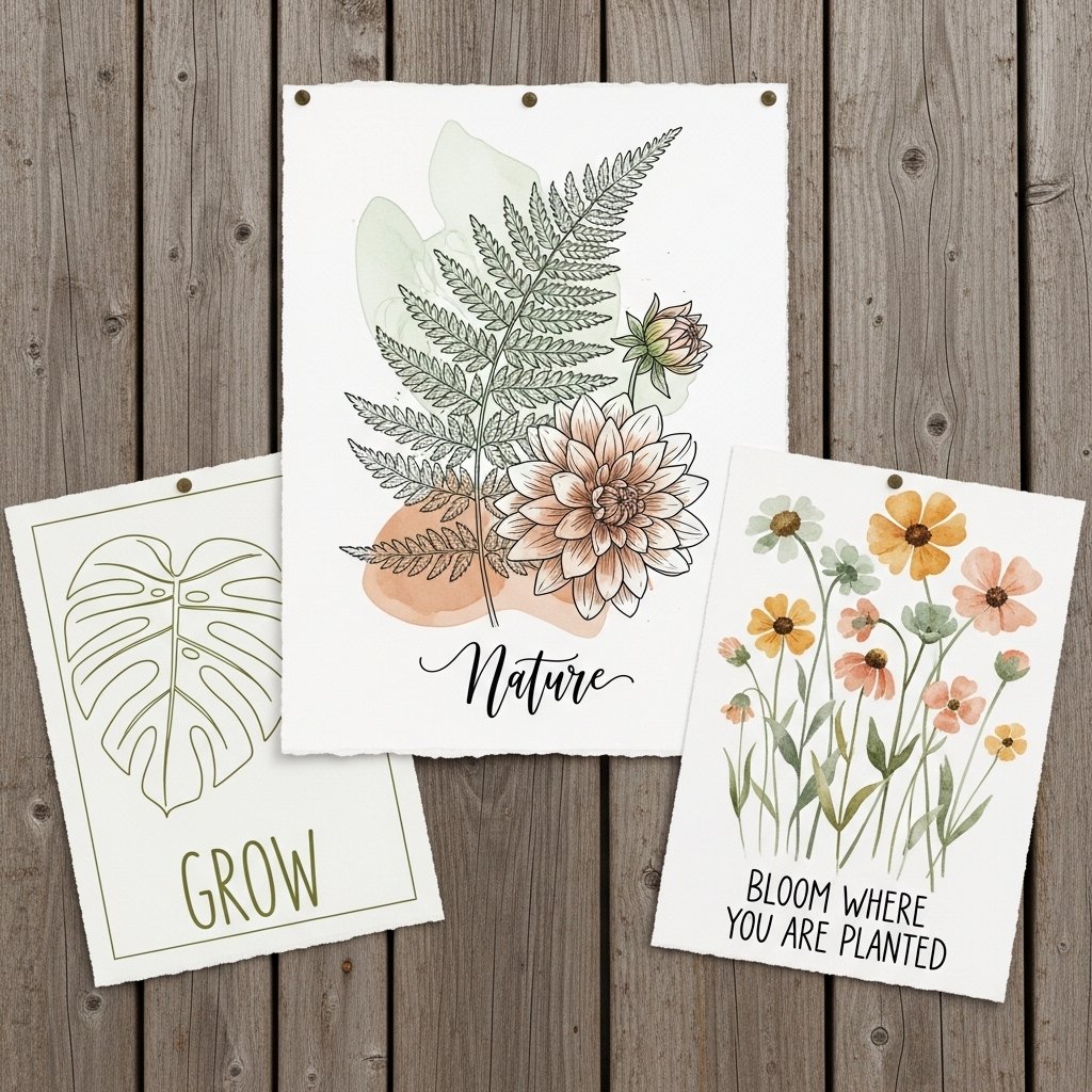 Nature-inspired handmade posters bring calmness and freshness into your room decor. Designs can include leaves, flowers, mountains, sunsets, or botanical sketches. Soft greens, earthy tones, and pastel shades create a soothing and relaxing atmosphere. You can use pressed leaves or flowers for a more organic and textured effect. These posters are ideal for creating a peaceful, cozy, and natural aesthetic in your space.