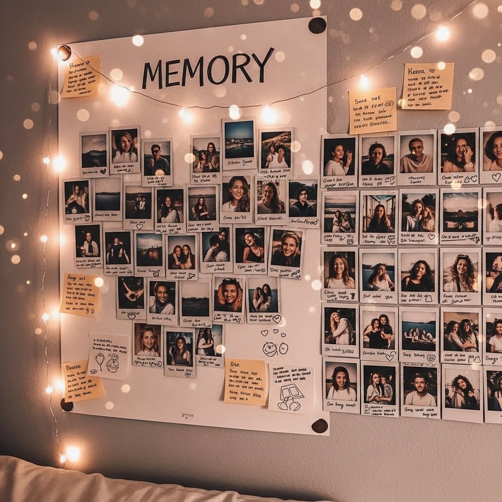 Polaroid-style handmade posters are perfect for displaying memories in a creative way. You can print small photos and arrange them in grids, hearts, or random layouts on a poster board. Adding handwritten captions, dates, or doodles makes the design more personal. This idea turns your wall into a visual story of your favorite moments. It’s a great option for bedrooms, dorms, or memory corners.