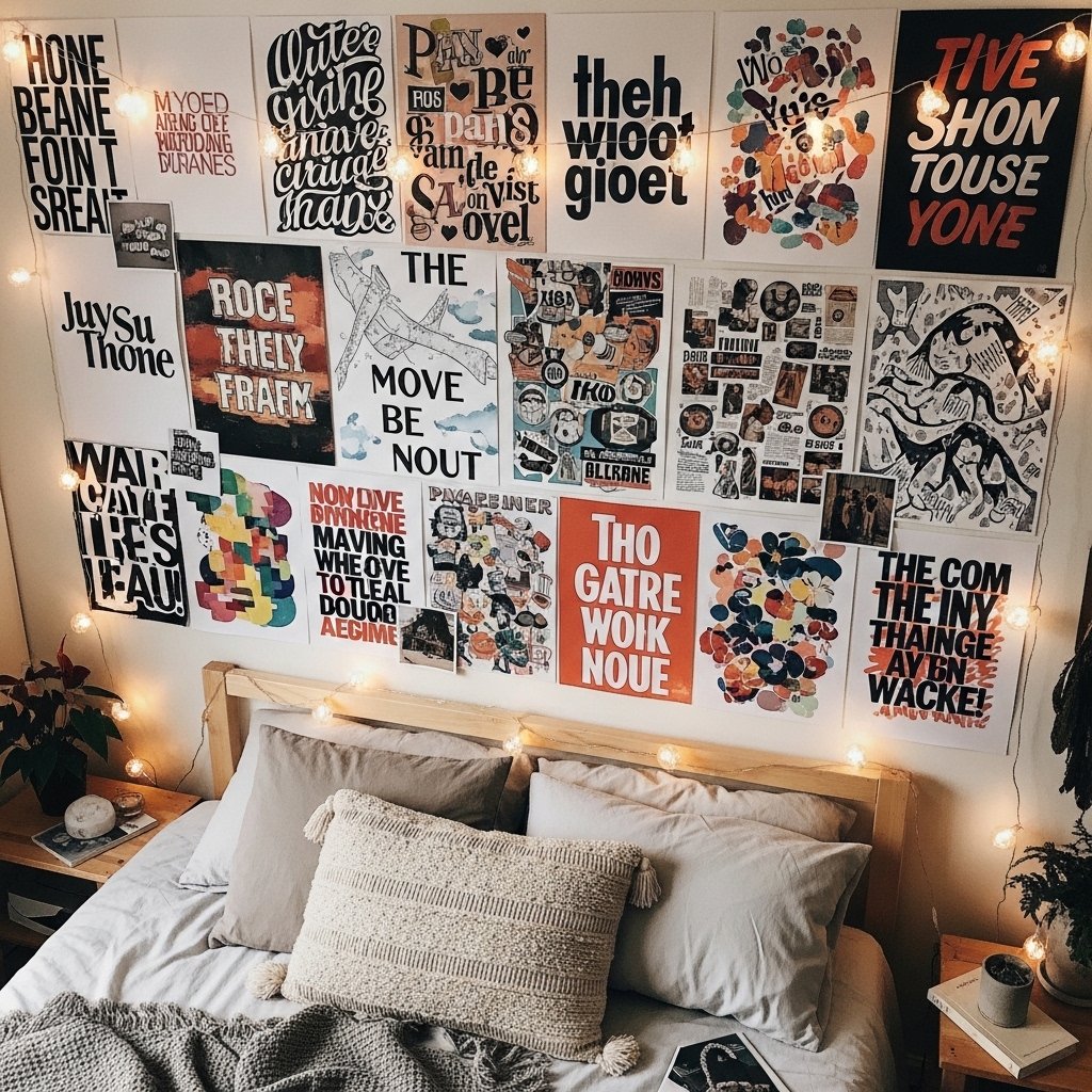 Aesthetic collage posters are perfect for creating a trendy and visually rich wall design. You can combine magazine cutouts, printed images, stickers, and textures to form a cohesive theme. Popular collage themes include vintage, soft girl, dark academia, or nature-inspired designs. This type of poster allows complete creative freedom and can be easily updated over time. It’s ideal for teens and young adults who love constantly refreshing their space.