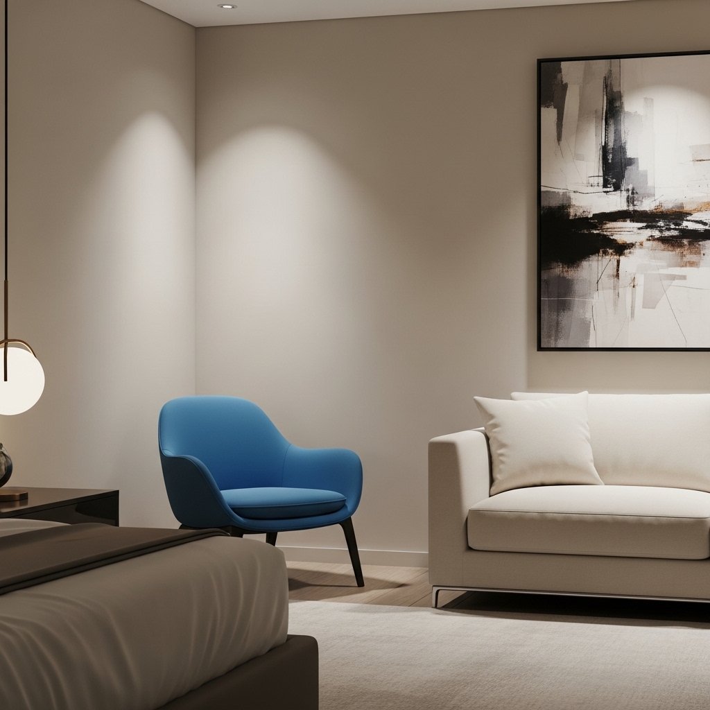 Incorporating blue furniture accents like chairs, stools, or headboards can elevate your room design. A blue chair or upholstered headboard adds a subtle pop of color without overwhelming the space. This idea works well in modern and contemporary interiors. Combining blue furniture with neutral surroundings creates a balanced aesthetic. It’s a stylish yet simple way to upgrade your decor.