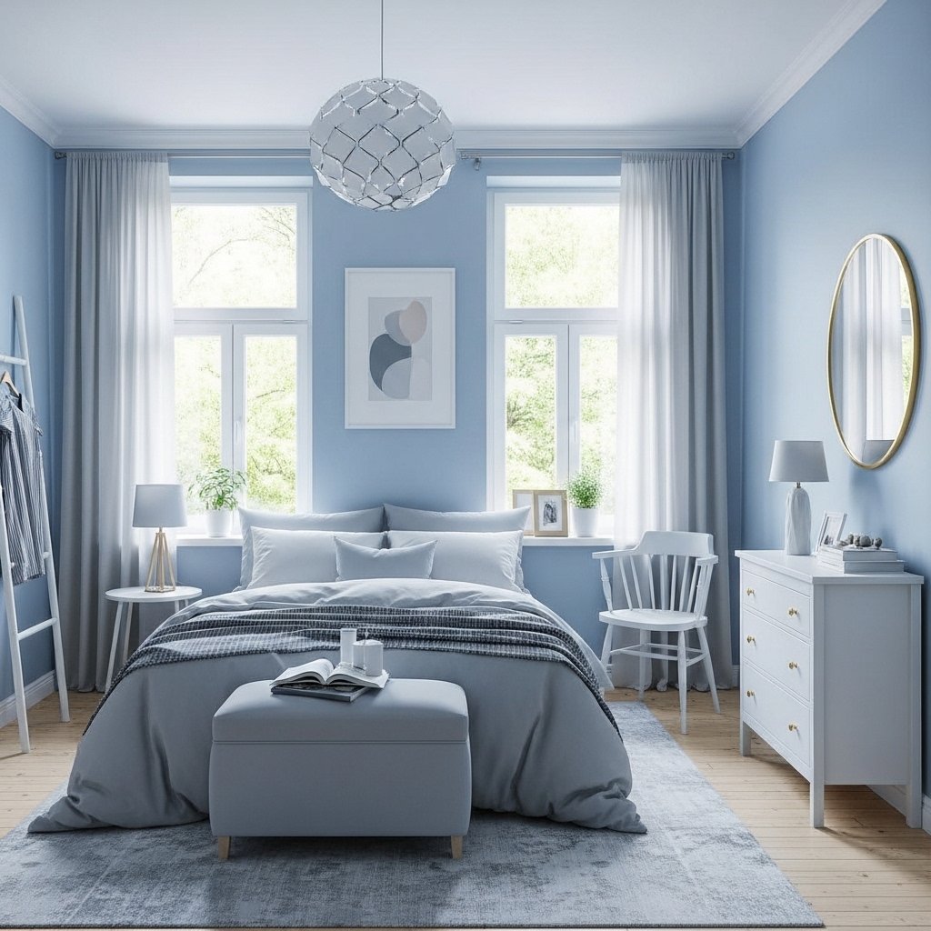 Painting your walls in a soft light blue shade is one of the easiest ways to transform your room. Light blue creates an airy and open feeling, making small rooms appear larger and brighter. This color works perfectly with minimalist furniture and neutral tones like white, beige, or gray. Keeping the walls simple without heavy patterns enhances the calming effect of the color. This idea is ideal for bedrooms, study areas, or relaxing living spaces.