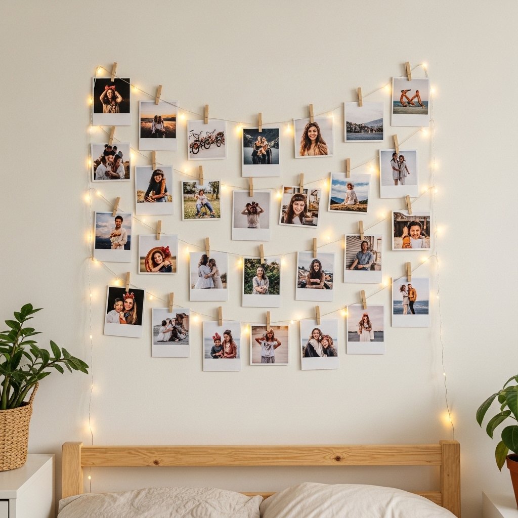 Adding personal touches makes a simple room feel more meaningful. Create a photo wall using string lights, clips, or a simple frame collage. Choose a few favorite pictures to keep the display clean and uncluttered. This idea helps reflect your memories and personality. It adds warmth without disrupting the minimalist style.