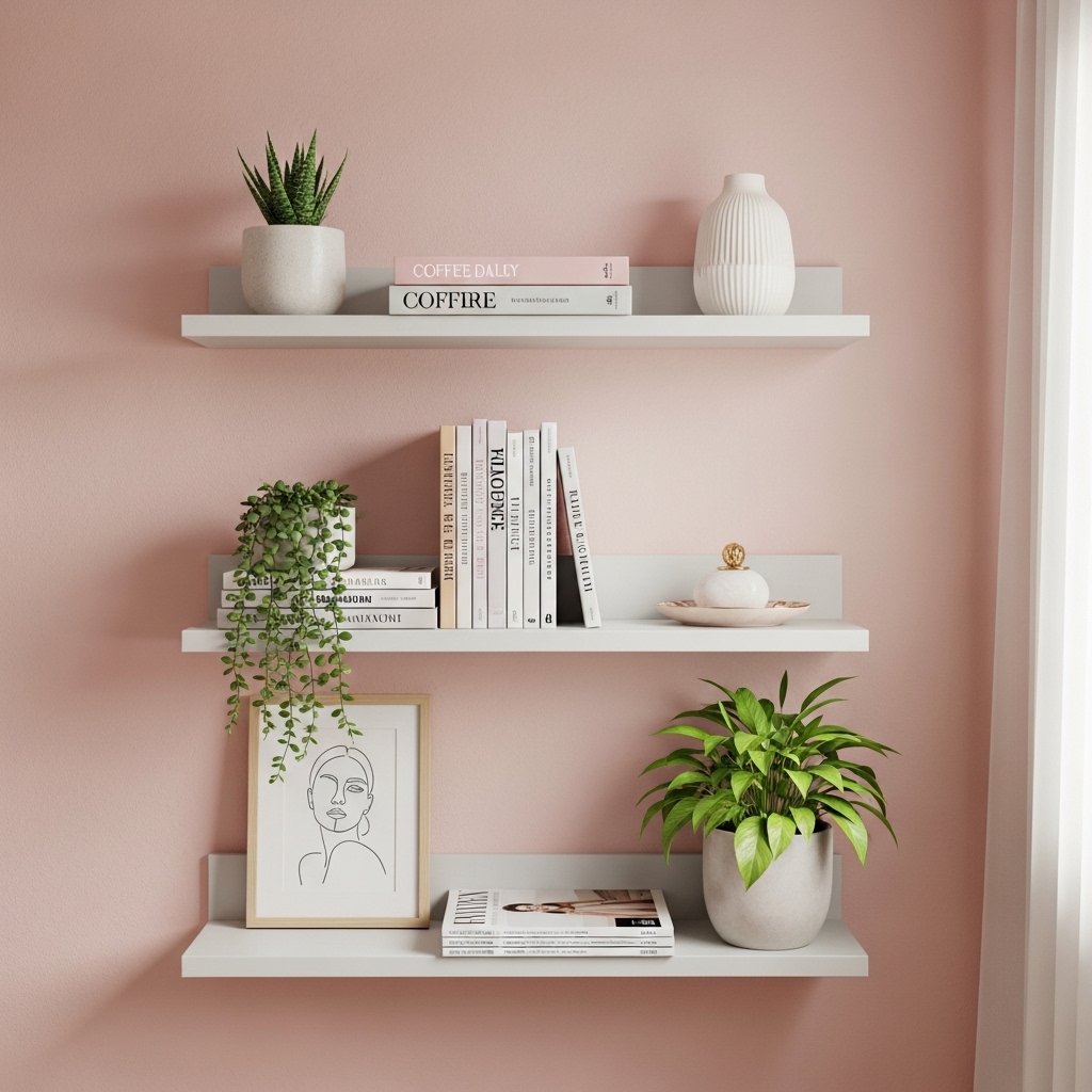 Floating shelves are perfect for simple room decor ideas for girls. Use them to display books, small plants, or decorative items. Keep the arrangement minimal to avoid clutter. Shelves add vertical storage while enhancing the wall decor. This idea combines functionality with aesthetic appeal in a clean and organized way.