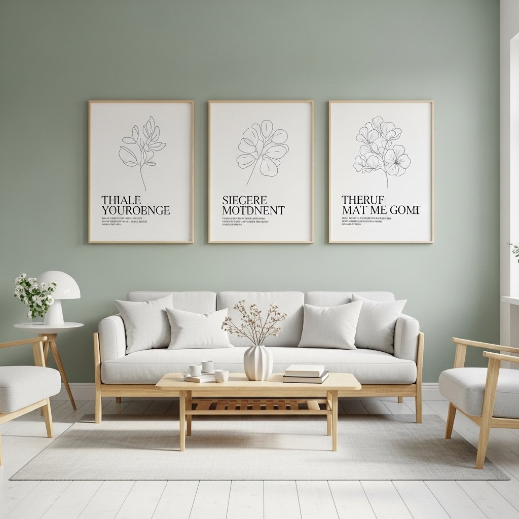 Combine posters with mirrors, shelves, and hanging plants for a dynamic wall composition. Green artwork alongside natural textures prevents the wall from looking flat. Small decorative shelves can hold candles or ceramics that match the color palette. This approach adds depth and personality to the room. The result feels curated instead of simply decorated.