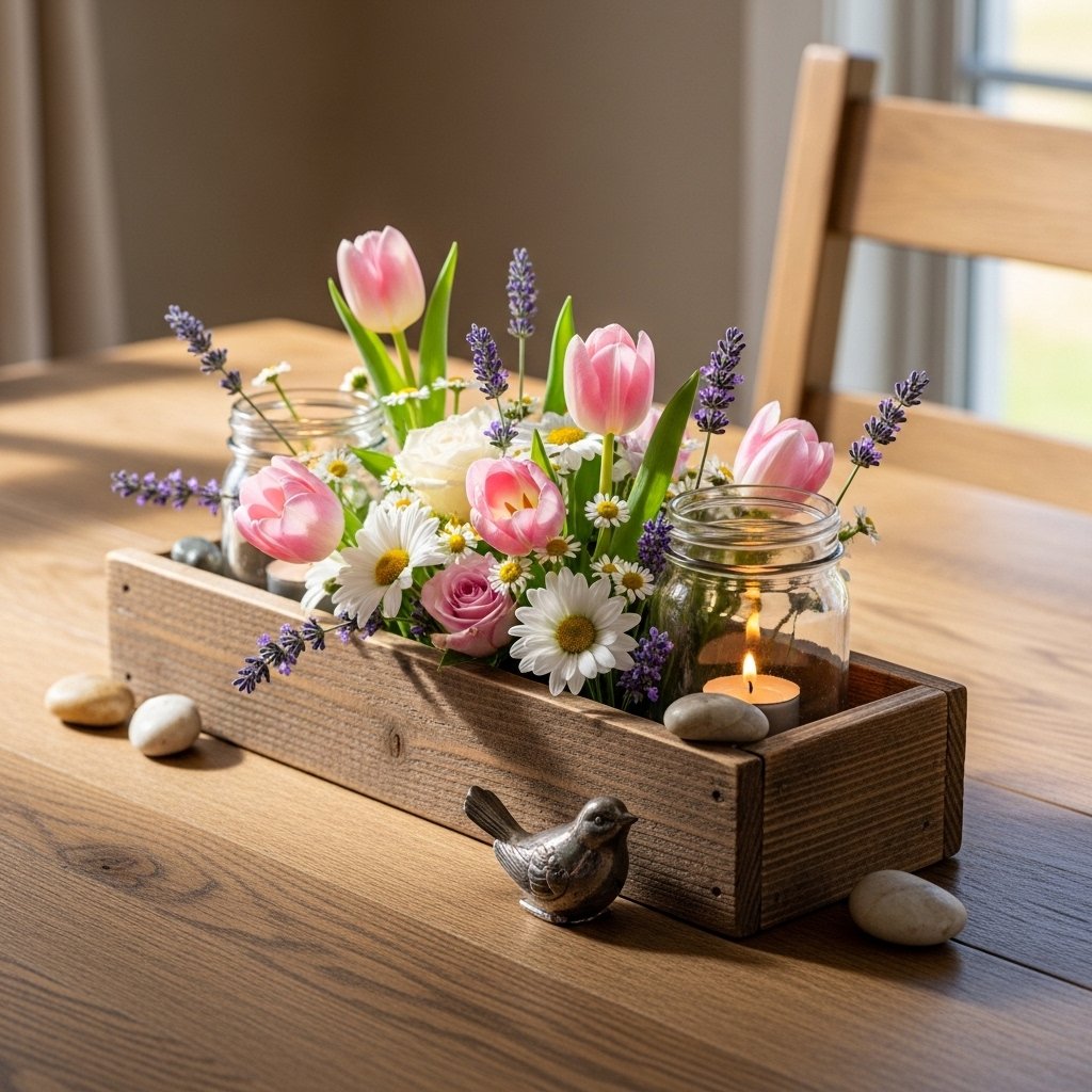 1. Rustic Wooden Centerpiece with Spring Flowers