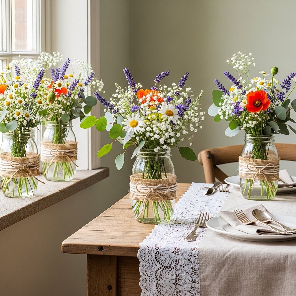 2. Mason Jar Rustic Flower Arrangements