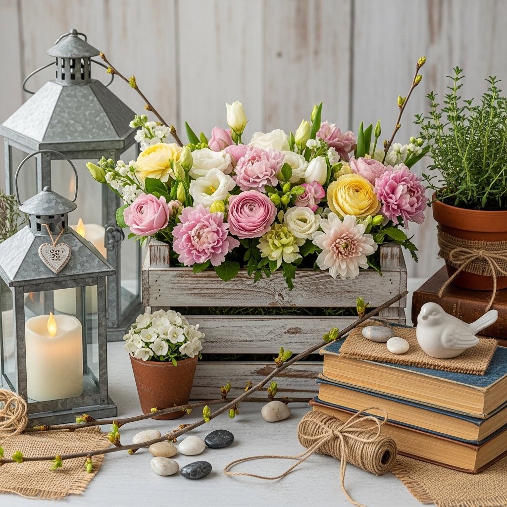 You can decorate your home with rustic spring ideas by adding fresh flowers, wooden signs, mason jars, and handmade decorations. Simple touches like floral arrangements, rustic trays, or vintage-style items can quickly transform a space. These small details help bring the natural beauty of spring into your living area.