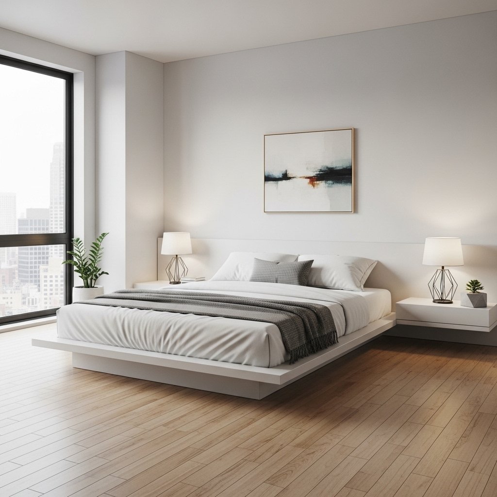 Low-profile furniture helps small bedrooms appear more spacious and balanced. Platform beds with clean lines maintain a minimalist aesthetic while avoiding bulky frames. Keeping furniture closer to the ground creates an illusion of higher ceilings. This approach works especially well in apartments and compact homes. The streamlined look enhances both simplicity and cozy comfort.