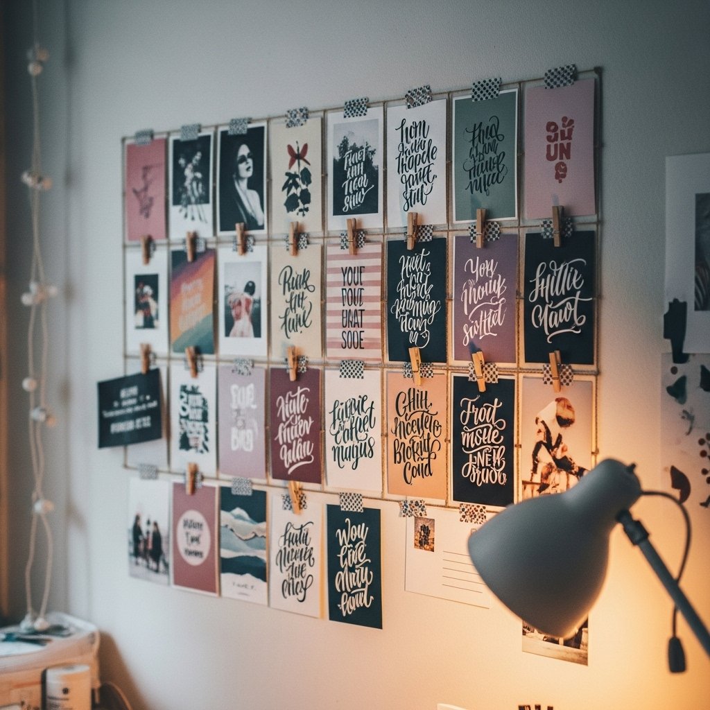 A photo wall collage is a simple way to personalize your room and add a creative touch. Print your favorite photos, quotes, or artwork and arrange them in a grid or freeform style. You can use washi tape or mini clips for an easy, damage-free setup. This DIY project not only adds personality but also makes your room feel warm and inviting. It’s perfect for bedrooms, study corners, or living spaces.