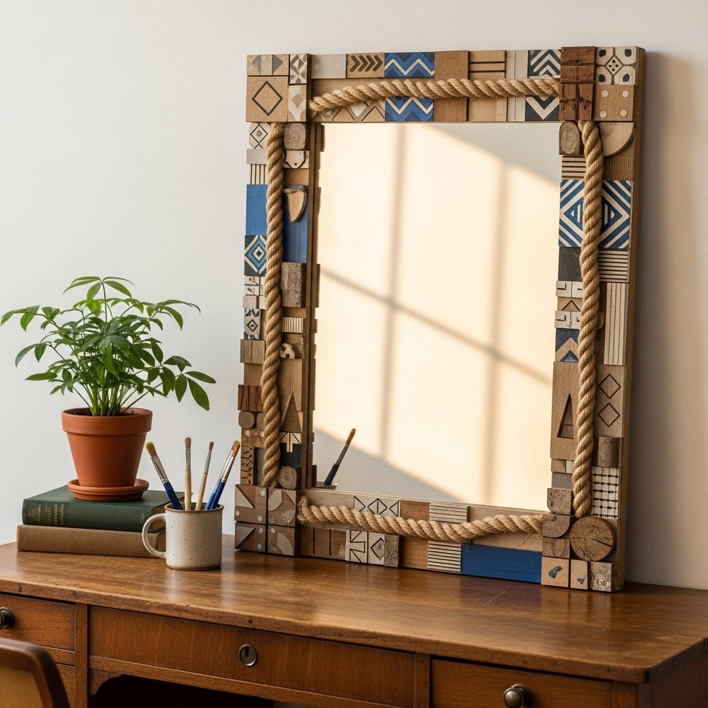 Mirror frames can transform a plain mirror into a statement piece. Use wooden sticks, rope, or even painted cardboard to create custom frames. This DIY idea adds personality and style while enhancing light and space in the room. Mirror decor is both functional and decorative, making your room feel larger and brighter. It’s perfect for bedrooms, bathrooms, and entryways.