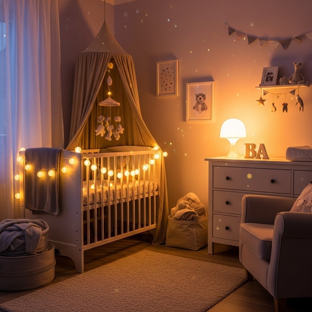 Lighting plays a big role in creating a calm and cozy baby room environment. You can use fairy lights, paper lamps, or soft-glow DIY lamps to enhance the room’s ambiance. Warm lighting helps create a soothing atmosphere, especially during nighttime routines. These lighting ideas are easy to set up and budget-friendly. They also add a magical and dreamy feel to the nursery.