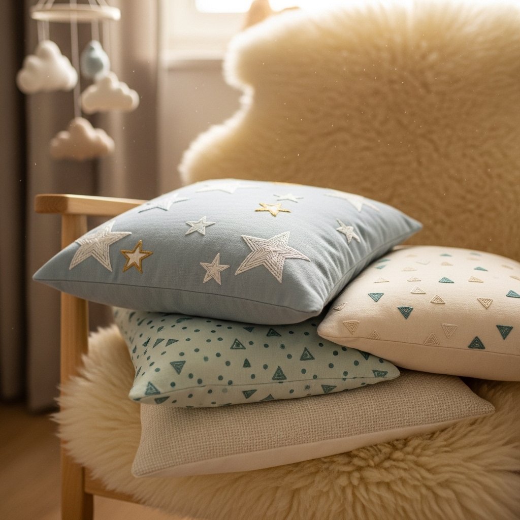 DIY cushion covers are a simple way to add comfort and style to a baby room. Using soft fabrics like cotton or linen, you can sew or even glue together adorable cushion covers. Adding small prints like polka dots, stars, or animals enhances the nursery theme. These cushions can be used on rocking chairs or seating areas for parents. It’s an easy project that makes the room feel warm, cozy, and inviting.