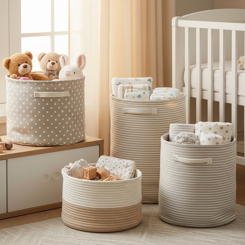 Keeping a baby room organized is important, and DIY storage baskets make it both functional and stylish. You can use fabric, rope, or even recycled boxes to create storage solutions for toys, clothes, and essentials. Decorating them with soft colors or labels adds a neat and aesthetic look. These baskets help reduce clutter while blending seamlessly with the room decor. This idea is perfect for maintaining a clean and organized nursery space.