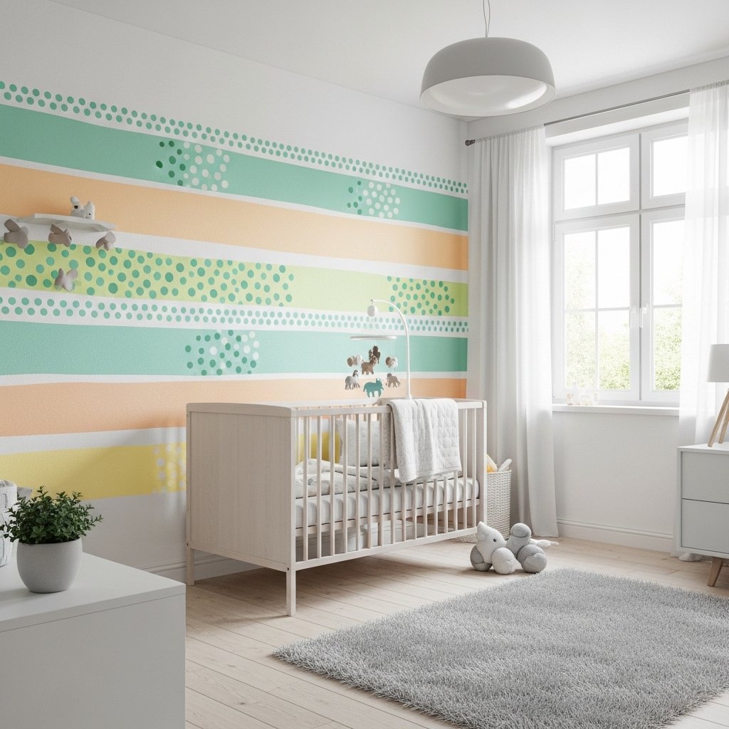 A painted accent wall is a simple yet effective way to transform a baby room. You can create soft patterns like stripes, polka dots, or half-painted walls using gentle colors. This adds visual interest without making the room feel too busy or overwhelming. Painting is an affordable DIY project that instantly upgrades the entire space. It’s a great option if you want a modern and stylish nursery look.