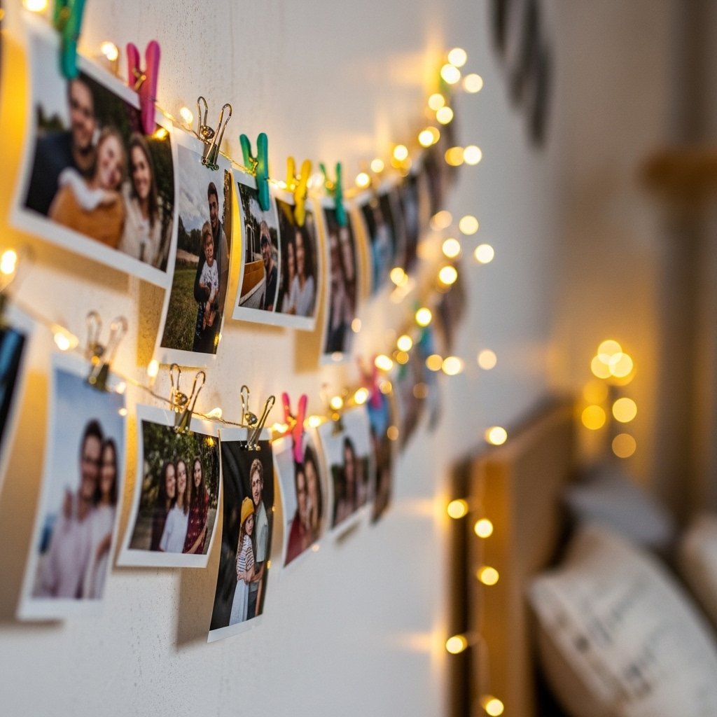 A paper clip photo wall display is a simple and stylish way to showcase your favorite memories. All you need is a few large paper clips, string lights, and printed photos. Attach the photos to the clips and hang them along the wall using the string lights for a cozy glow. This decor idea works great for bedrooms, dorm rooms, and study areas. It adds a personal touch while keeping your space organized and trendy.