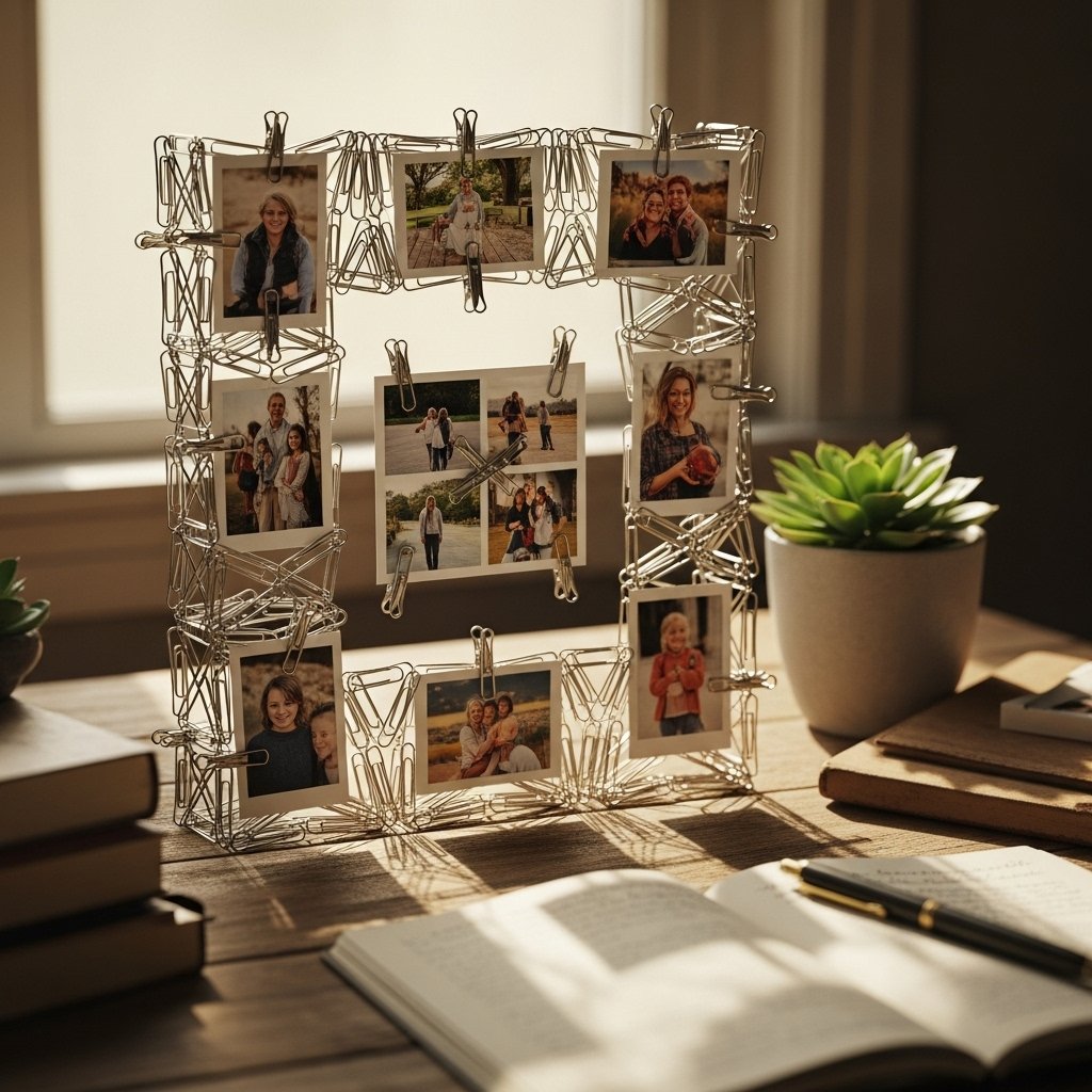 Paper clip photo frame decor is a simple way to display your favorite photos without buying expensive frames. Attach paper clips around a small board or frame and clip your photos in place. You can create a collage effect by layering multiple photos together. This DIY is perfect for decorating your wall or desk area. It’s an affordable and creative way to keep your memories visible every day.