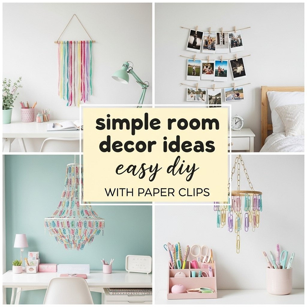 Simple room decor ideas using paper clips include creating photo displays, wall grids, hanging notes, and lightweight art pieces. Paper clips are easy to use and help organize as well as decorate your space. These ideas are perfect for adding a creative touch to your room without making it look crowded.