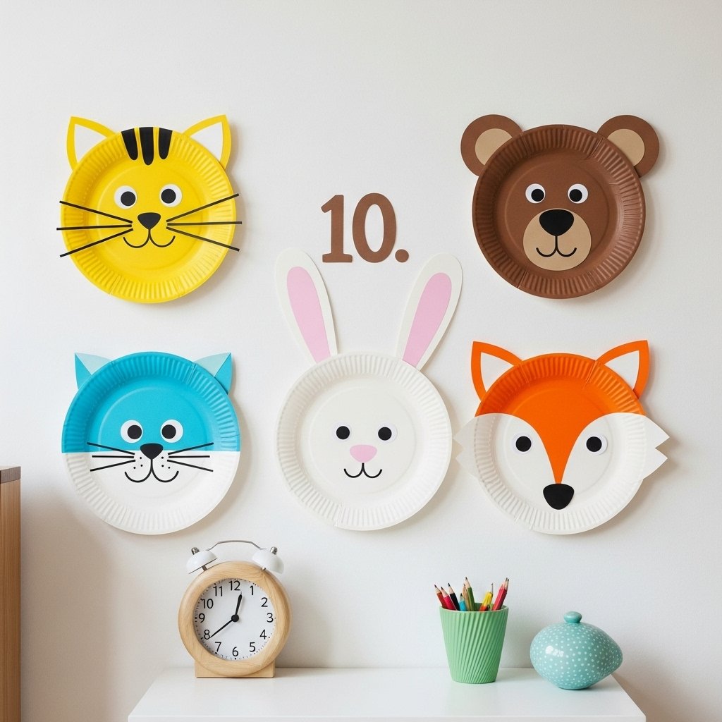 Paper plate animal wall decor is perfect for kids’ rooms and play areas. Cut out ears, eyes, and nose from paper plates and color them with markers or paint. You can create cute animals like cats, bears, or rabbits using simple shapes. Attach them to the wall with double-sided tape or glue. This fun DIY idea adds a playful touch to any room.