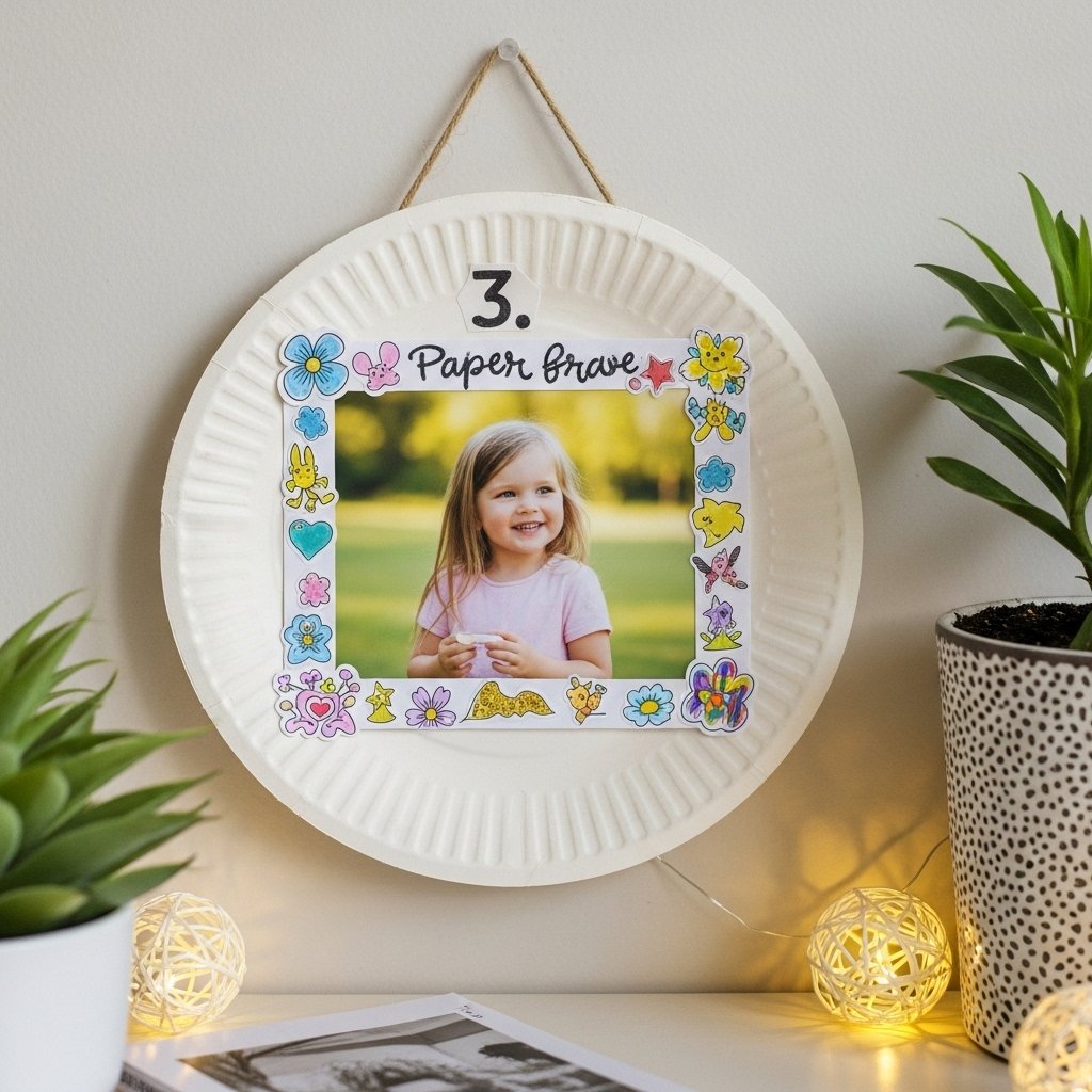 Paper plate photo frames are a fun way to display your favorite memories. Cut the center of the plate and decorate the border with markers, glitter, or stickers. Attach a photo to the back using glue or tape, and add a string to hang it on the wall. This DIY frame can be customized with any theme, like stars, hearts, or flowers. It’s perfect for dorm rooms, kids’ rooms, or a cozy corner of your home.